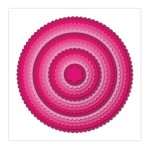 Shaped cards, matts and layers, frames, borders, panels, and more can be crafted using this 8x8” Scalloped & Pierced Circles metal die set. This set contains a massive 17 circular-shaped metal dies in varying sizes, ranging from a mini 1x1”, right up to a sizeable 7¾x7¾”, plus a handy 8x8” magnetic storage sheet. This set has eight scalloped edge nesting dies, eight pierced design nesting dies, and a small flower die. Use them together or independently for a wide range of results. They’re perfect for cardmaking, scrapbooking, home décor, gift bags and boxes, and other papercrafting projects.