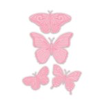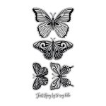 This set includes one 5x7” 3D embossing folder, four butterfly outline metal dies, and five coordinating photopolymer stamps.